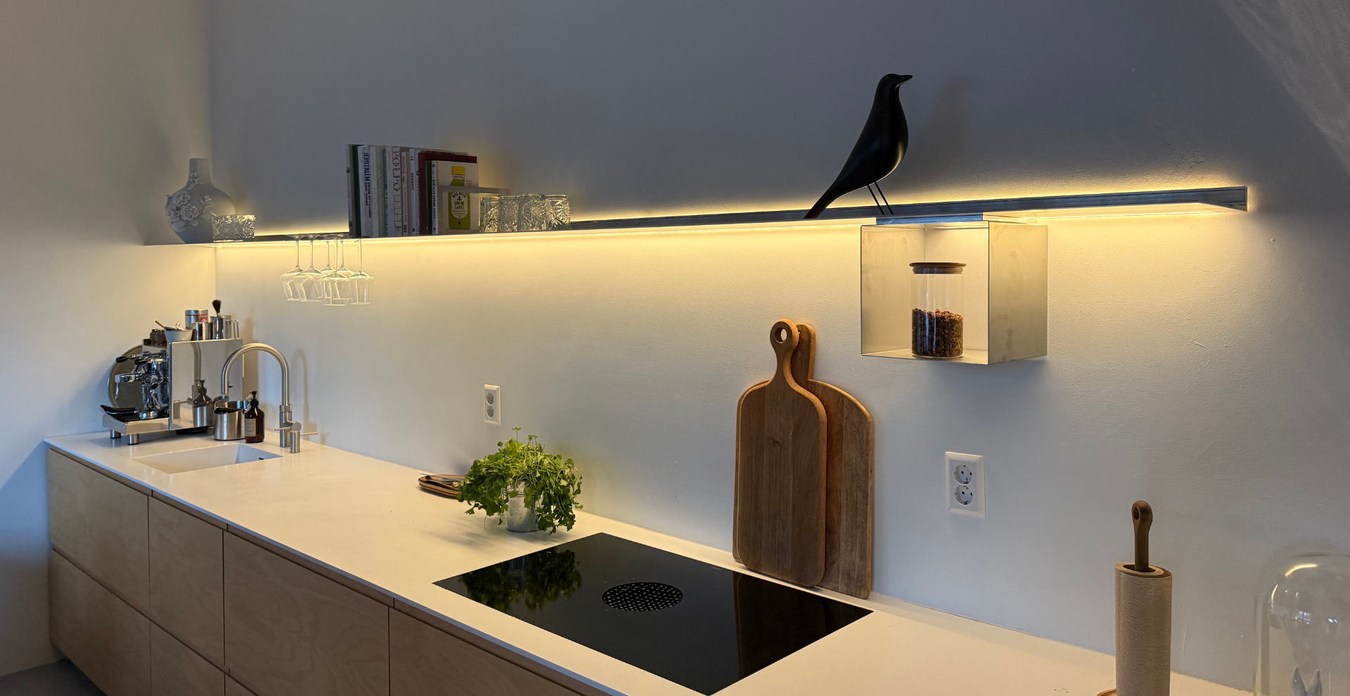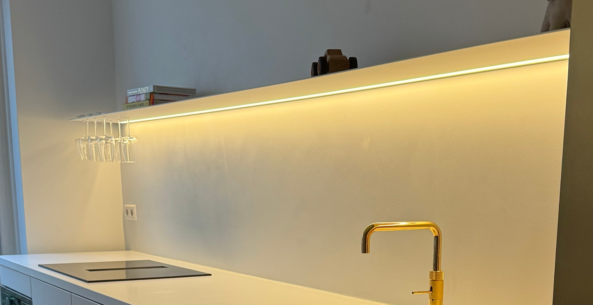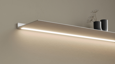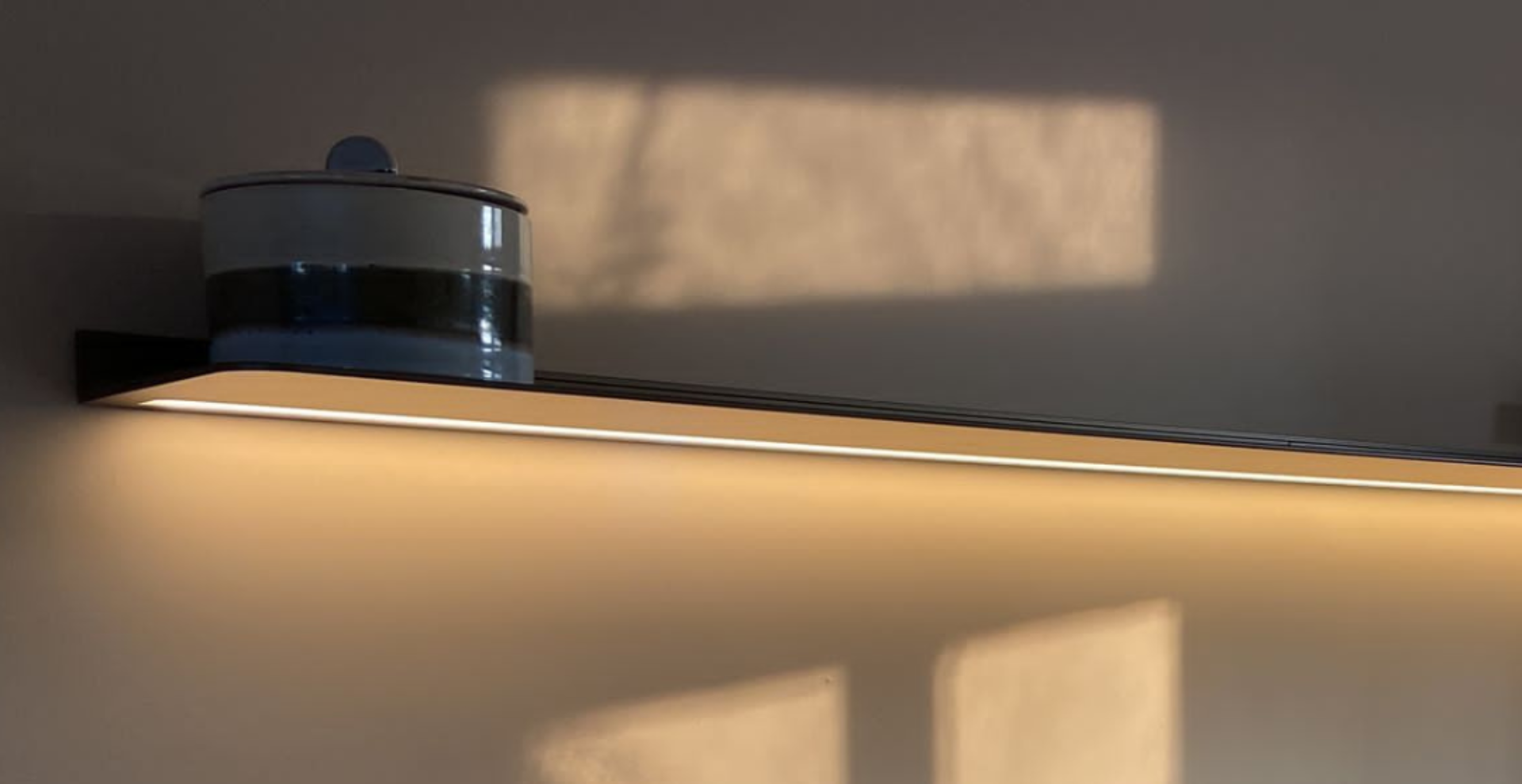 Illuminate your space with elegance with the wall shelf White with lighting in the bottom. This premium shelf from Strackk combines high-quality design with built-in lighting to provide both a practical and atmospheric addition to any interior. Ideal as a work light above the kitchen sink or for highlighting art, books or decorative items, this shelf brings a new dimension to your home or office. The shelf is moisture resistant and does not rust. The brightness is dimmable and the color is adjustable from white to yellow light with the included remote control. Underlighting is possible for 16.5, 22 and 29.5 cm deep shelves. Each shelf is custom made: as soon as we receive your order, we will immediately start to make your shelf from raw aluminum in the desired depth, length and color. Money back guarantee applies to standard lengths and colors. Read all about our return policy. Free shipping applies to boards up to 150cm, for longer boards our fixed low shipping costs apply.