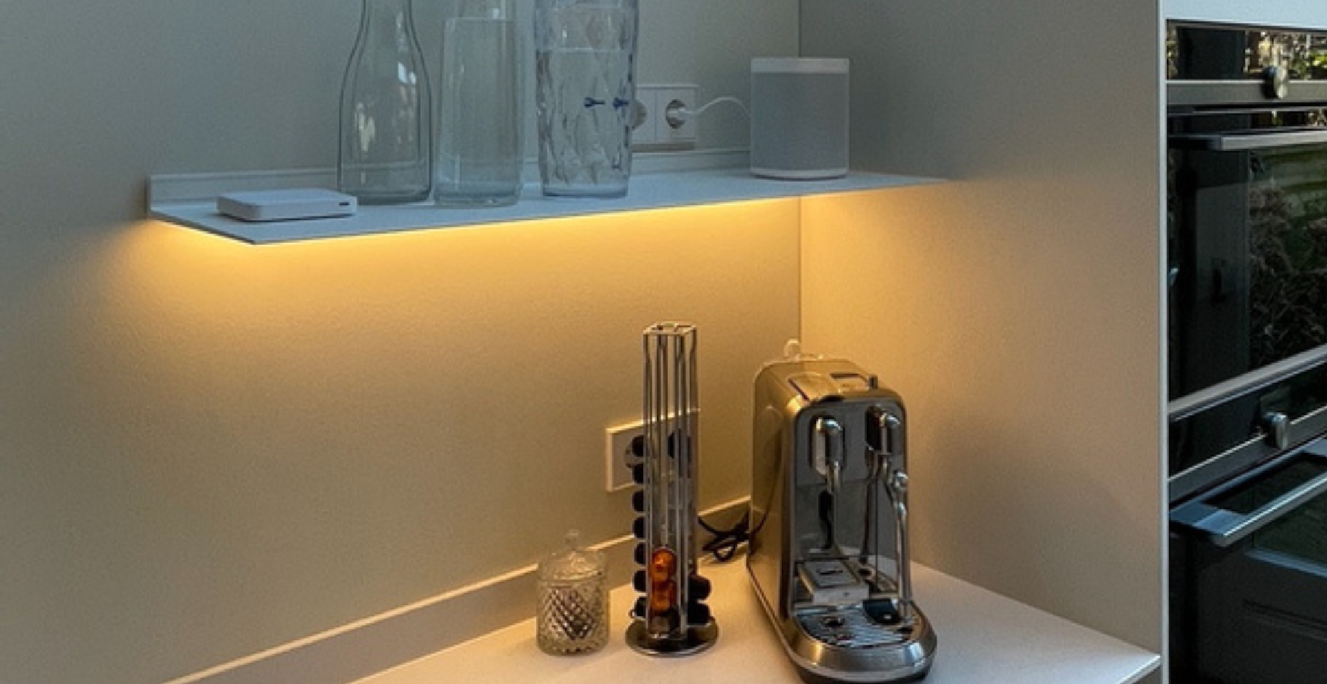 - You will receive the Strackk shelf with integrated lighting that can be connected to the standard mains. For an additional charge of €25 you can specify during your order if you want to connect the shelf to a control system such as HUE, Dali, Casambi or Zigbee. You will then receive a different controller. Associated accessories, such as a remote control, as well as linking the shelf to the HUE (or other) system is up to you to arrange. Strackk bears no responsibility for the pairing itself and the operation of non Strackk products. It is recommended that the coupling and installation be taken care of by an electrician or specialist.