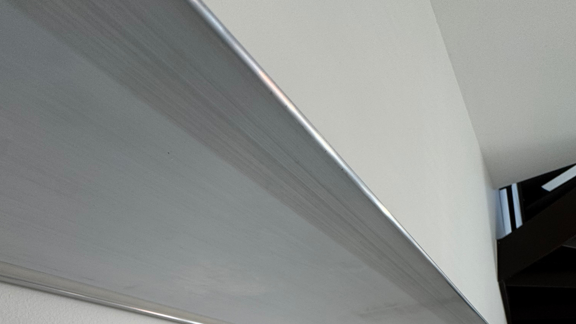 - With the aluminum shelf, you will receive two identical metal strips. One strip features the Strackk logo. Decide which strip you will attach in the laying or standing section of the shelf.