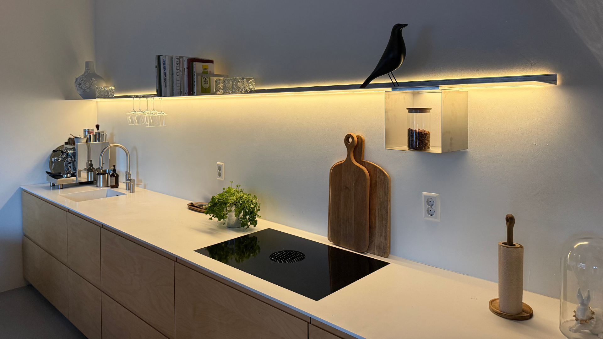 - You will receive the Strackk shelf with integrated lighting that can be connected to the standard mains. For an additional charge of €25 you can specify during your order if you want to connect the shelf to a control system such as HUE, Dali, Casambi or Zigbee. You will then receive a different controller. Associated accessories, such as a remote control, as well as linking the shelf to the HUE (or other) system is up to you to arrange. Strackk bears no responsibility for the pairing itself and the operation of non Strackk products. It is recommended that the coupling and installation be taken care of by an electrician or specialist.