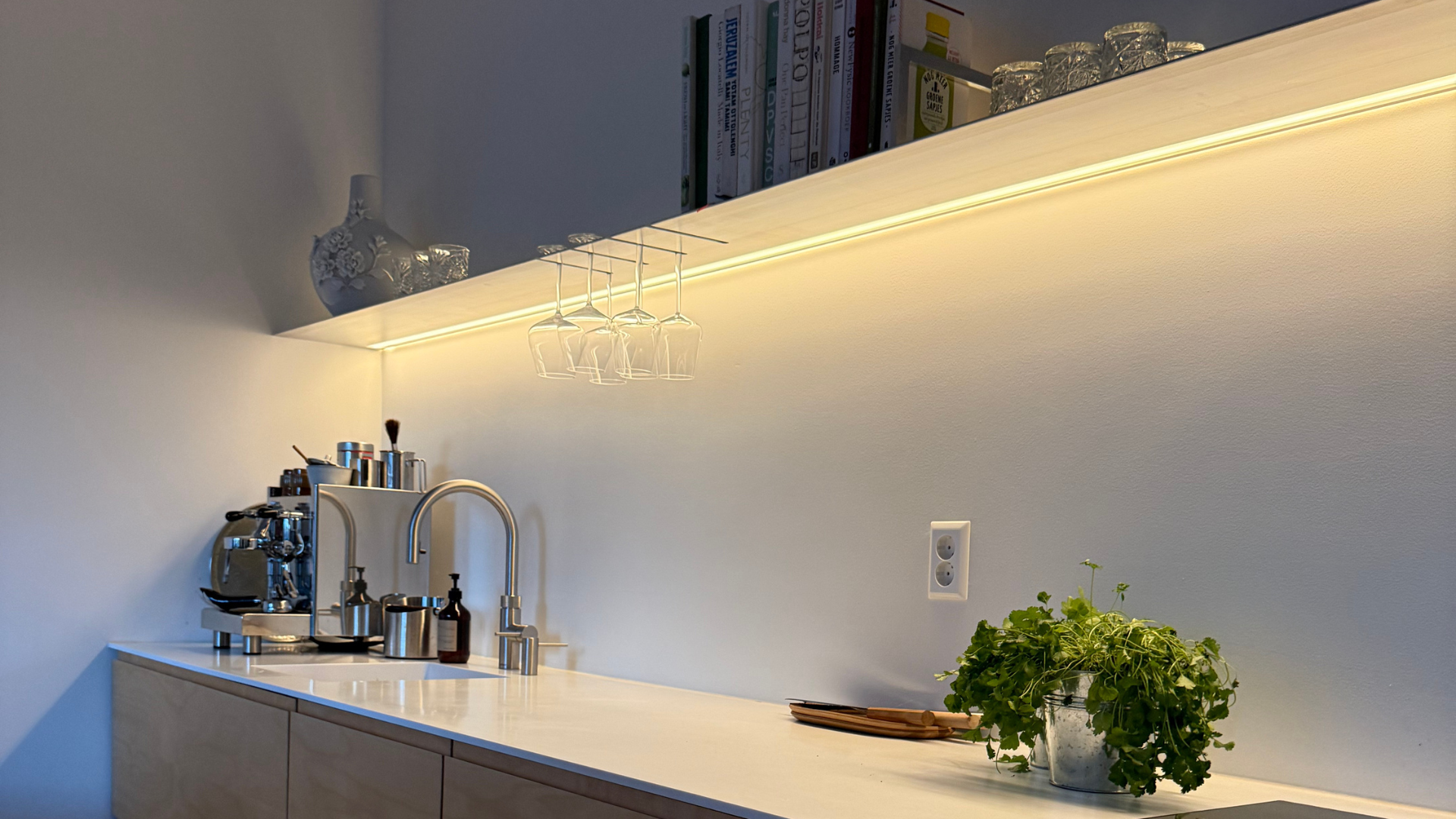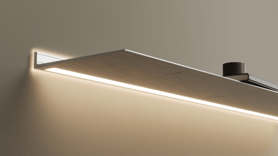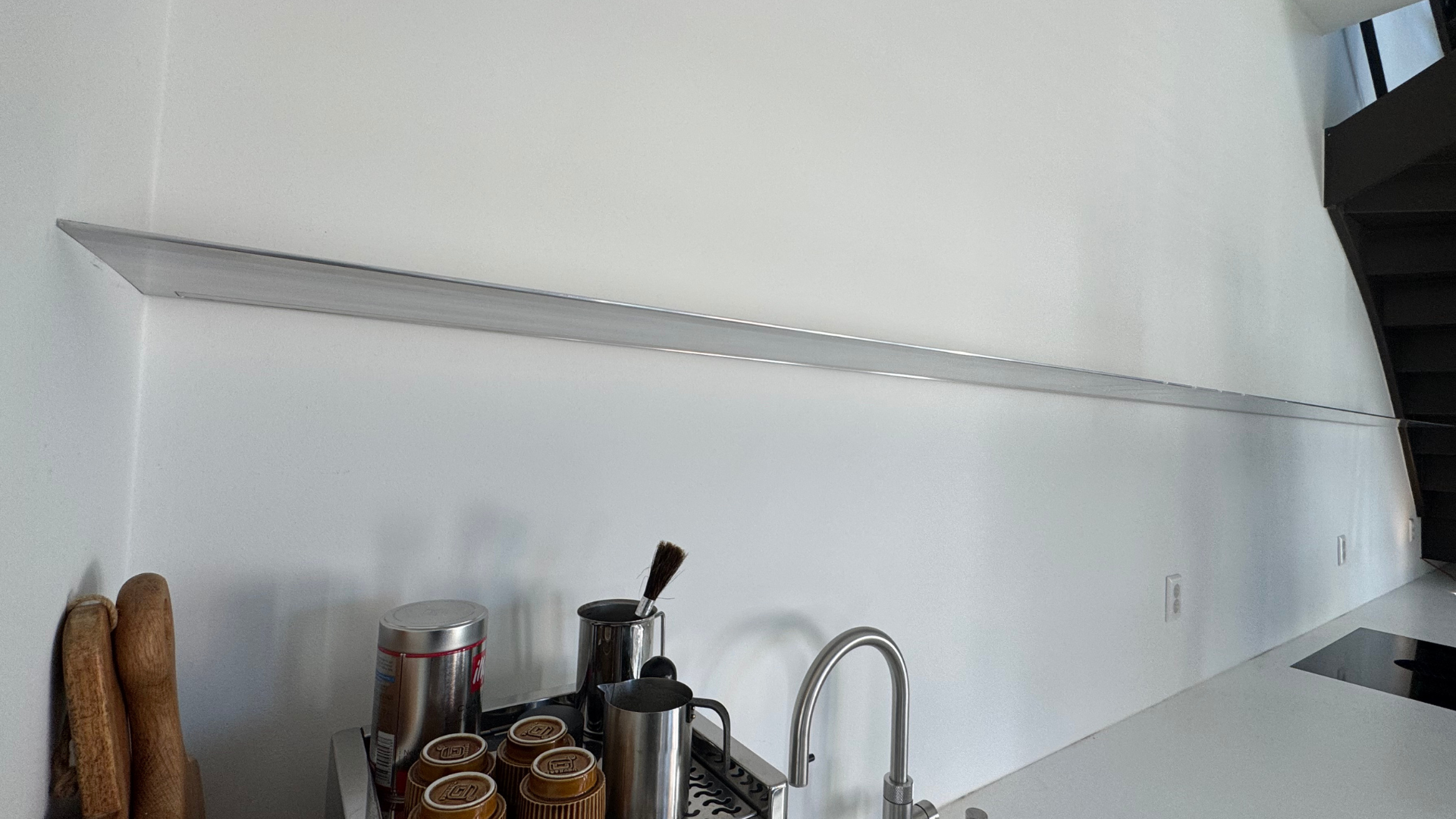 Illuminate your space with elegance with the wall shelf Off-white with lighting in the bottom and above. This premium shelf from Strackk combines high-quality design with built-in lighting to provide both a practical and atmospheric addition to any interior. Ideal as a work light above the kitchen sink or for highlighting art, books or decorative items, this shelf brings a new dimension to your home or office. The shelf is moisture resistant and does not rust. The brightness is dimmable and the color is adjustable from white to yellow light with the included remote control. Underlighting is possible for 22 and 29.5 cm deep shelves. Each shelf is custom made: as soon as we receive your order, we will immediately start to make your shelf from raw aluminum in the desired depth, length and color. Due to the Christmas holiday period, the delivery time is 8 (instead of 6) weeks. Money back guarantee applies to standard lengths and colors. Read all about our return policy. Free shipping applies to boards up to 150cm, for longer boards our fixed low shipping costs apply.
