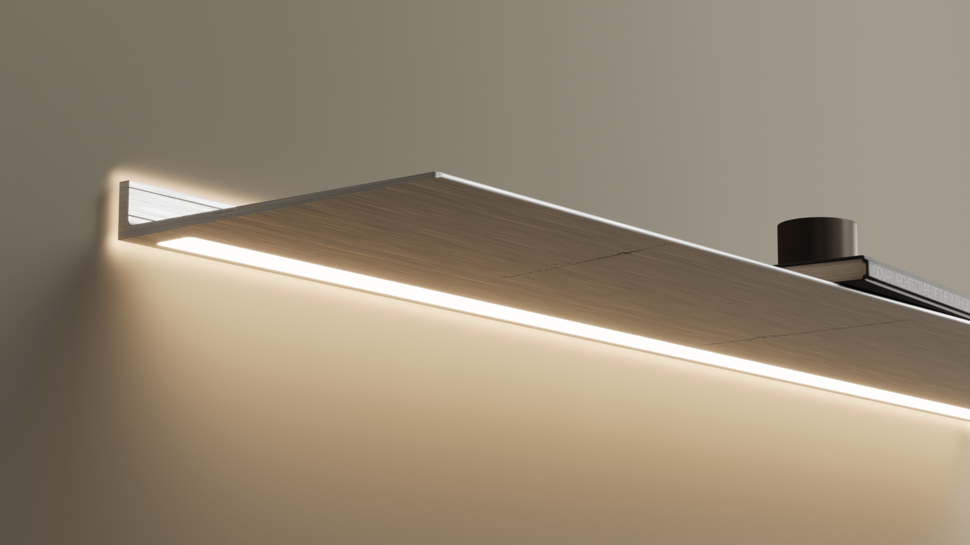 - Integrated lighting: LED lighting under the shelf provides subtle, ambient lighting that accentuates your displayed items without being overwhelming. Or turn the lights brighter and to whiter for work light above your kitchen countertop or desk.