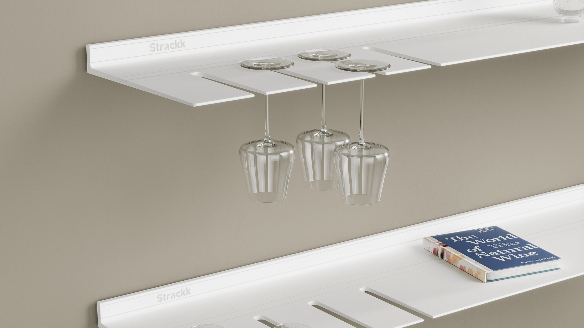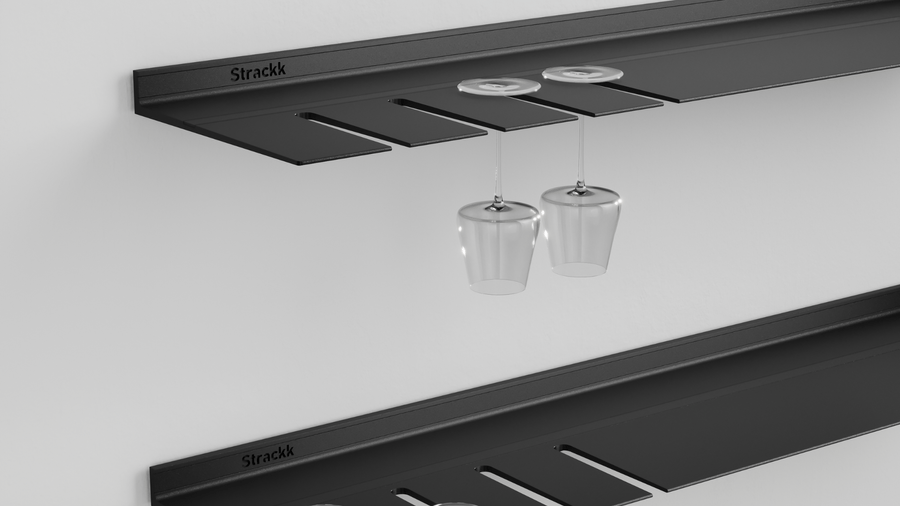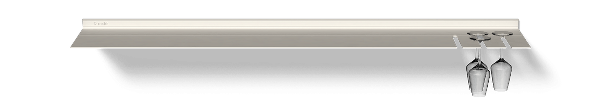 La étagère murale avec porte-verres à vin Blanc est idéale pour la cuisine ou le salon. Vous avez ainsi vos verres à vin à portée de main. Lors du processus de commande, vous pouvez choisir le nombre de rainures et si vous les souhaitez à gauche ou à droite. Une rainure peut contenir au moins 2 grands verres à vin rouges. Le nombre de rainures n'affecte pas le prix. L'étagère flottante est fabriquée à partir d'un seul morceau de métal recyclé, ce qui la rend très solide et durable. Vous pouvez placer tous vos livres de cuisine lourds sur l'étagère car elle peut supporter un poids allant jusqu'à 250 kilogrammes par mètre.