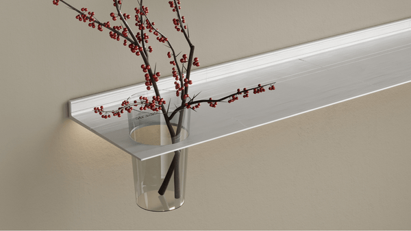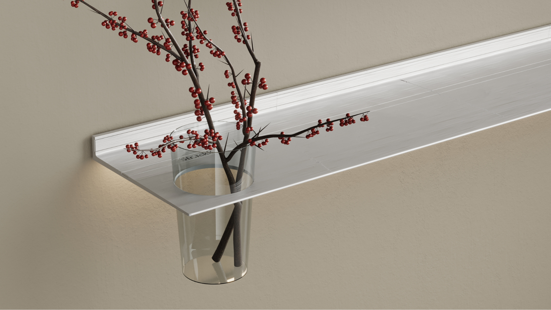 L'étagère flottante est fabriquée à partir d'une seule pièce de métal recyclé afin que l'étagère soit extrêmement solide et durable. Vous pouvez présenter vos objets les plus lourds sur l'étagère car elle peut supporter un poids allant jusqu'à 250 kilogrammes par mètre.