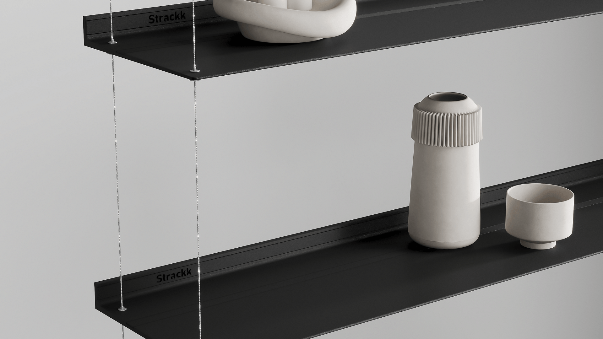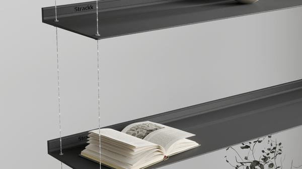 Le séparateur de pièce Blanc se compose d'étagères flottantes. Votre salon conserve un caractère spacieux avec cette cloison ouverte. Le séparateur de pièce est fixé par 4 cordes métalliques qui passent à travers de petites encoches dans les coins de chaque étagère et sont fixées au plafond et au sol. La distance de suspension entre les étagères est flexible et vous la déterminez lors de l'installation. Chaque étagère est fabriquée sur mesure et a un délai de livraison de 5 à 6 semaines.
