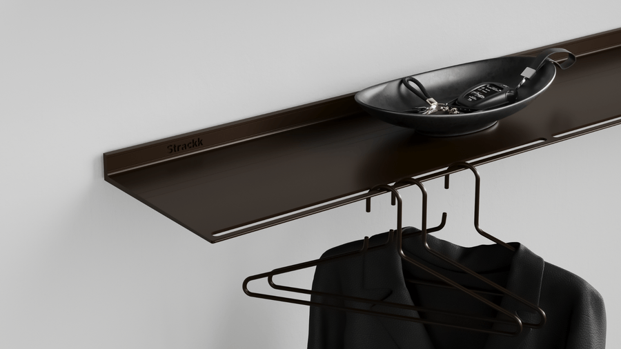 Hanging this wall coat rack is quick and easy. Due to the invisible suspension system, the shelf floats on the wall. No shelf supports are used. In addition to a manual, we supply all mounting materials such as a ruler, plugs, screws and spirit level.