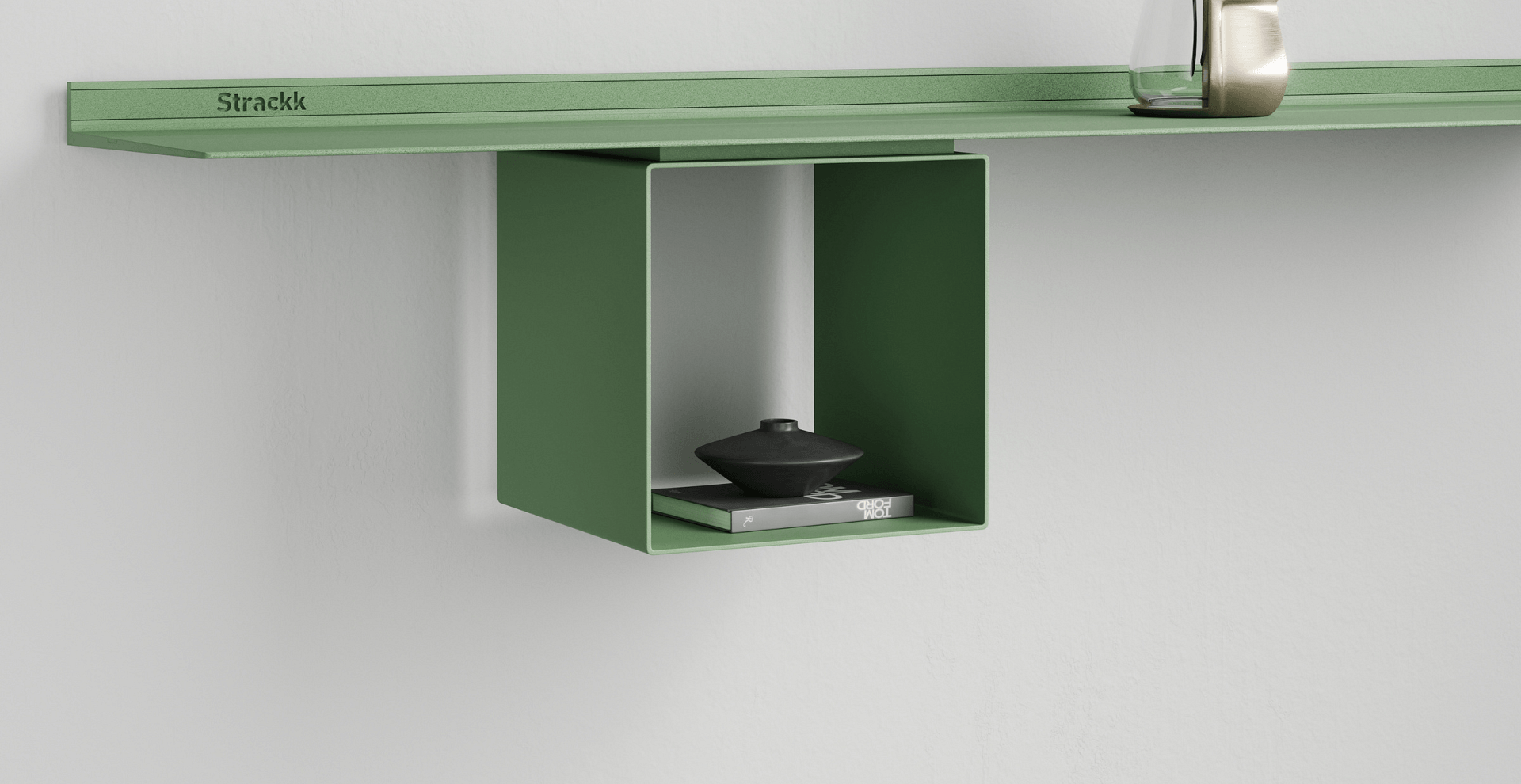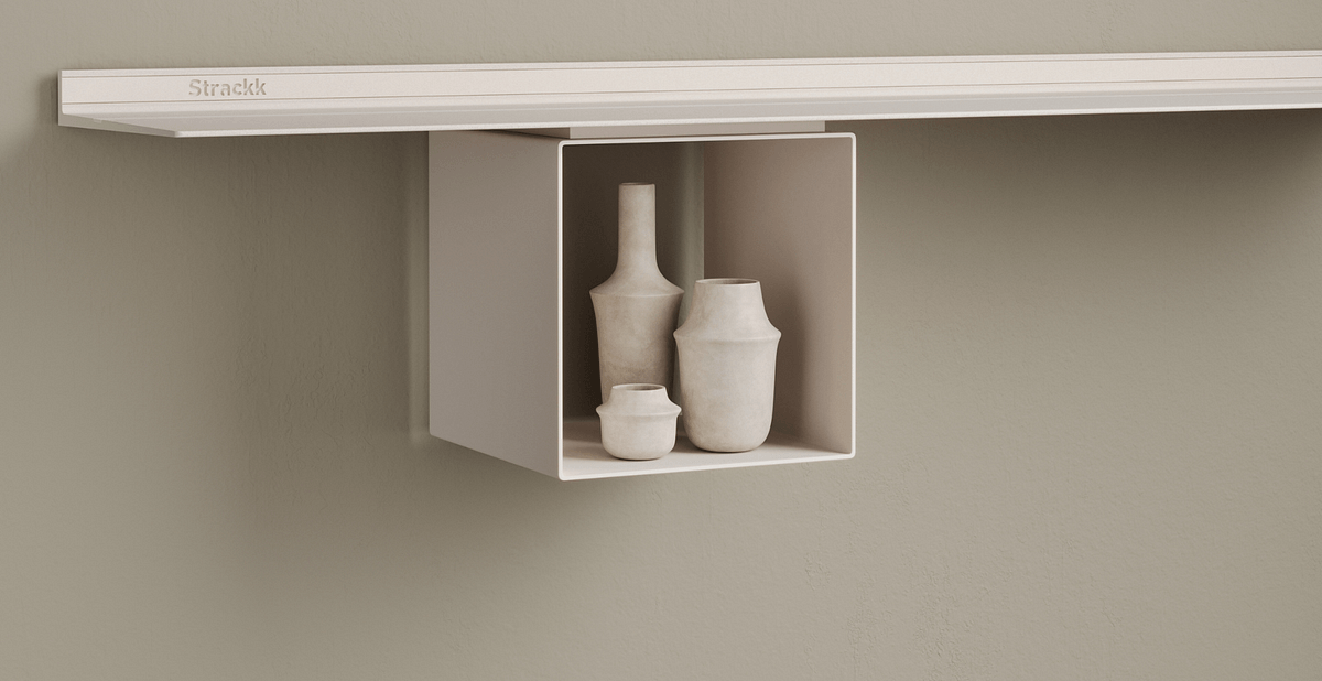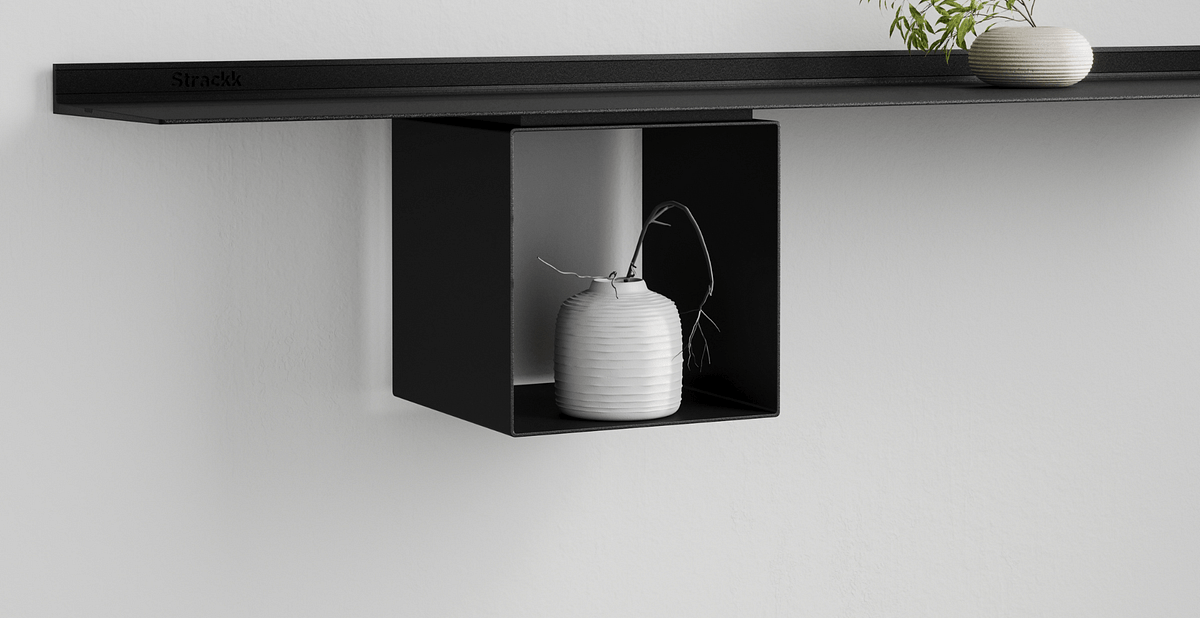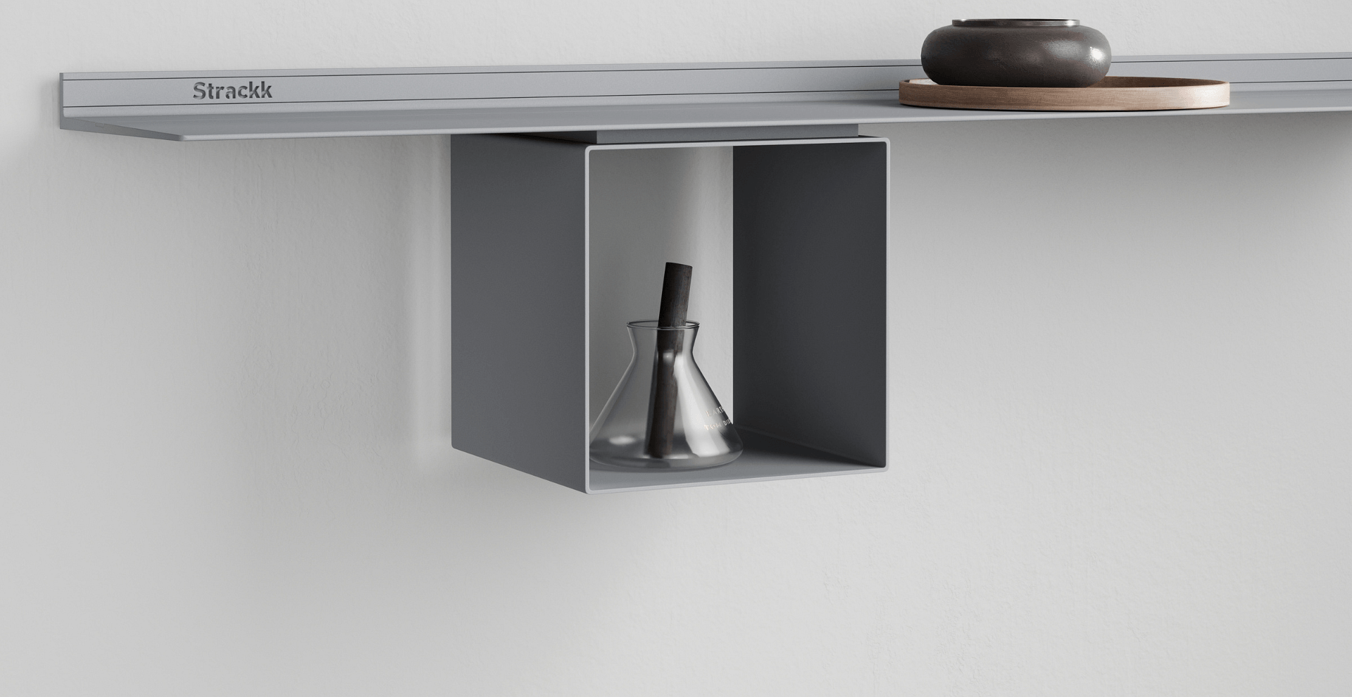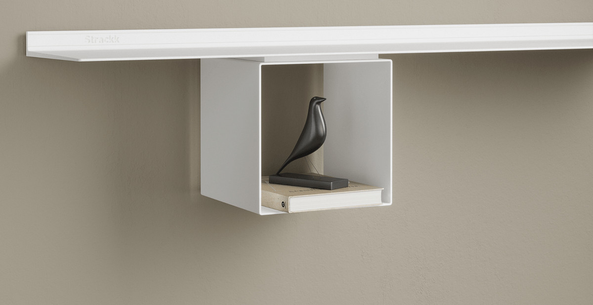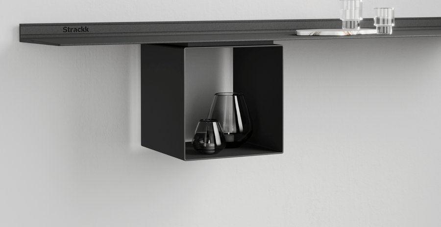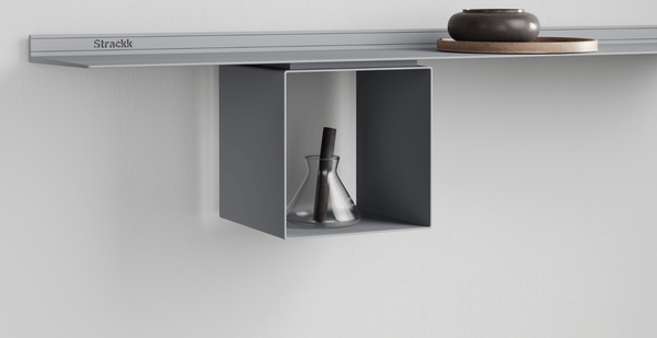 - Naadloze Integratie: Exact ontworpen om harmonieus onder de 29,5 cm diepe wandplank van Strackk te passen. Een uitbreiding van uw opslagruimte.