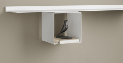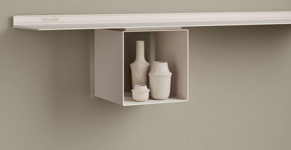 Verrijk uw ruimte met dit elegante, vierkante cabinet in Wit. Speciaal ontworpen om naadloos onder uw 29,5cm diepe Strackk wandplank te klikken. Dit stijlvolle cabinet is de perfecte oplossing voor het bewaren van kleine items en het uitstallen van decoratieve accessoires, terwijl het tegelijkertijd een verfijnde touch toevoegt aan uw interieur. Het cabinet heeft een uitsparing aan de bovenzijde zodat, indien u een wandplank met verlichting onder heeft, het licht in het cabinet schijnt en uw spullen mooi worden uitgelicht.