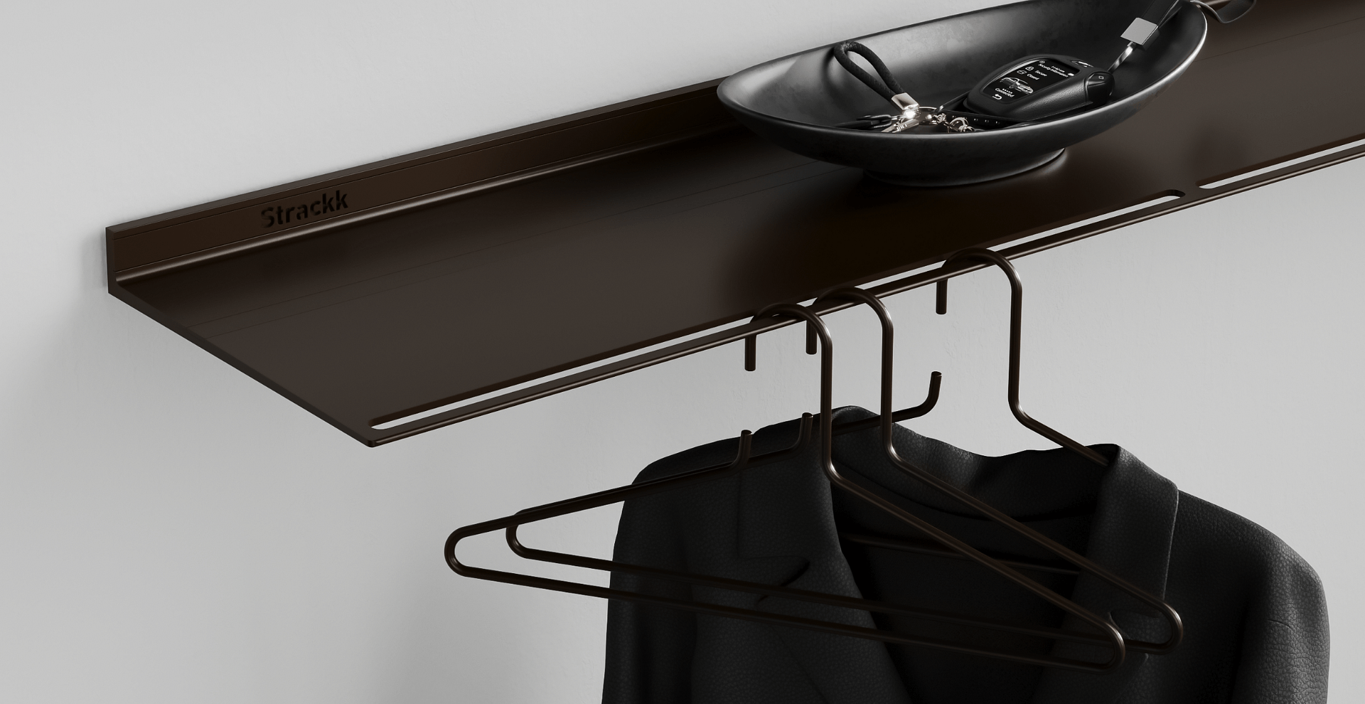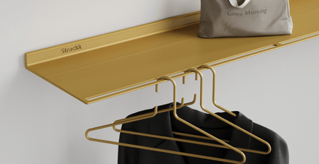 - Elegant Design: Met een breedte van 41,5 cm, een hoogte van 21 cm en een diepte van 1 cm passen deze hangers perfect in de sleuven van uw Strackk wandkapstok.