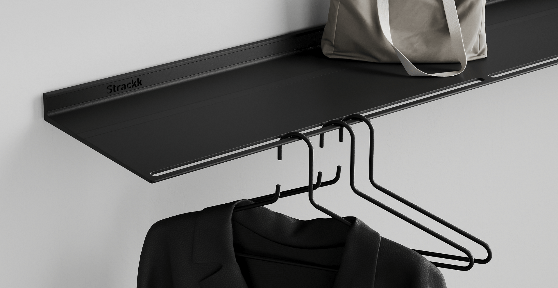Complementeer uw Strackk wandkapstok met deze stijlvol ontworpen kledinghangers. Verkrijgbaar per set van drie, deze hangers sluiten naadloos aan bij de elegante en minimalistische stijl van onze wandkapstok. Zo voegt u niet alleen functionaliteit, maar ook een verfijnd esthetisch element toe aan uw garderobe.