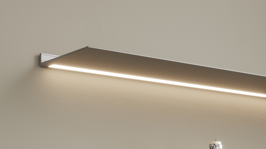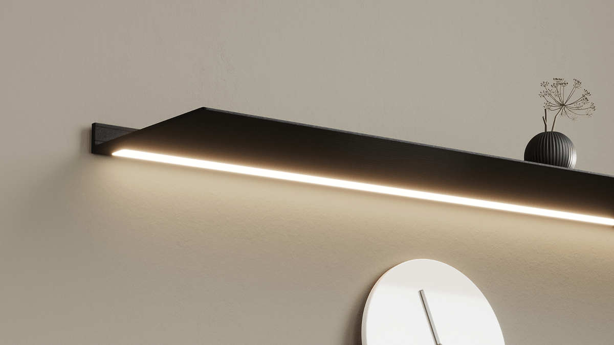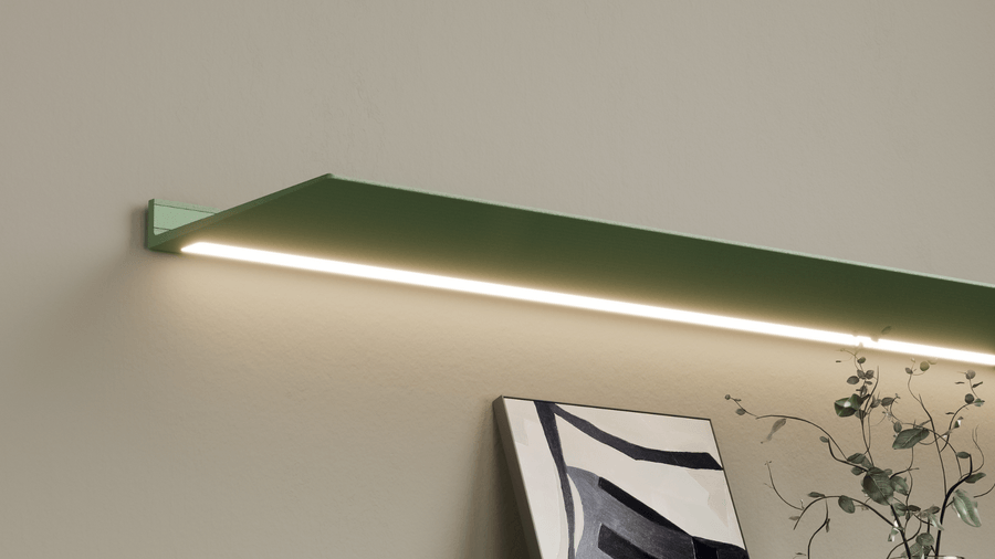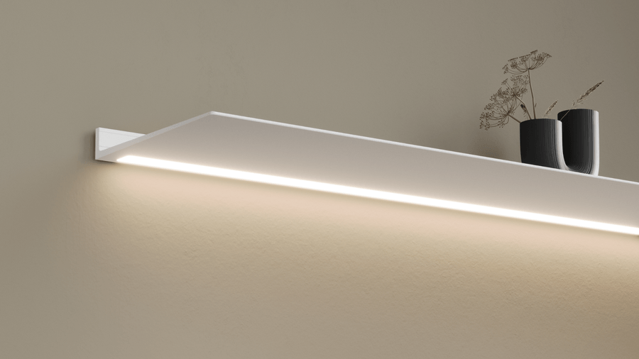 Verlicht uw ruimte met elegantie met de wandplank Wit met verlichting in de onderzijde. Deze premium plank van Strackk combineert hoogwaardig design met ingebouwde verlichting om zowel een praktische als sfeervolle toevoeging te bieden aan elk interieur. Ideaal als werklicht boven het keukenaanrecht of voor het uitlichten van kunst, boeken of decoratieve items, deze plank brengt een nieuwe dimensie in uw huis of kantoor.