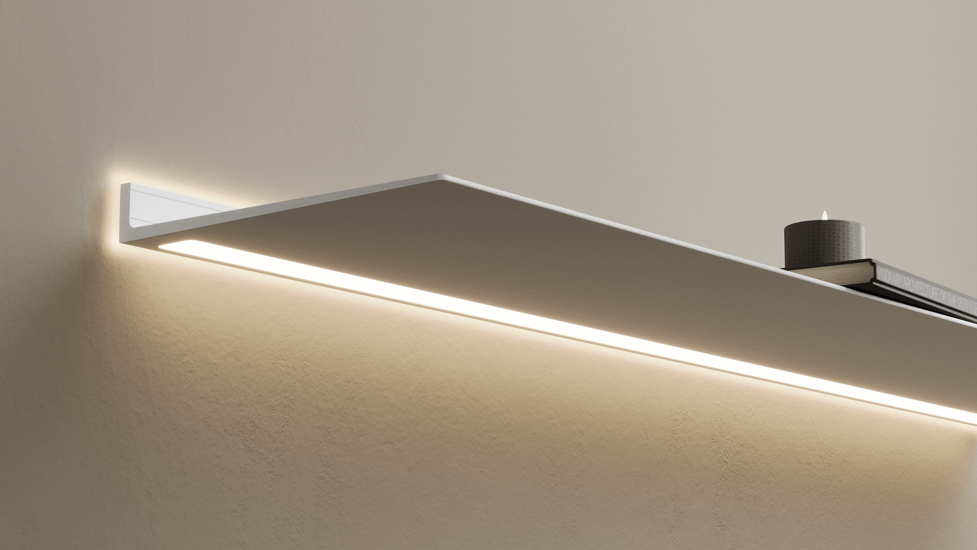Verlicht uw ruimte met elegantie met de wandplank Wit met verlichting in de onderzijde en rondom aan muurzijde. Deze premium plank van Strackk combineert hoogwaardig design met ingebouwde verlichting om zowel een praktische als sfeervolle toevoeging te bieden aan elk interieur. Ideaal als werklicht boven het keukenaanrecht of voor het uitlichten van kunst, boeken of decoratieve items, deze plank brengt een nieuwe dimensie in uw huis of kantoor.