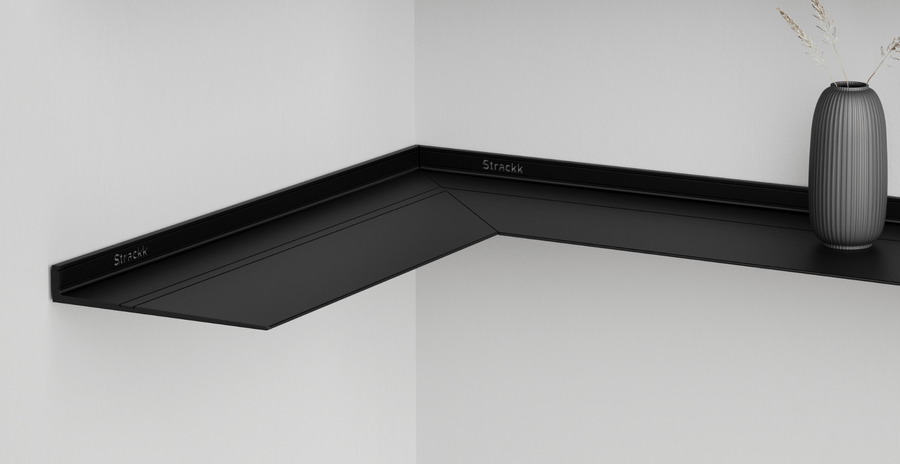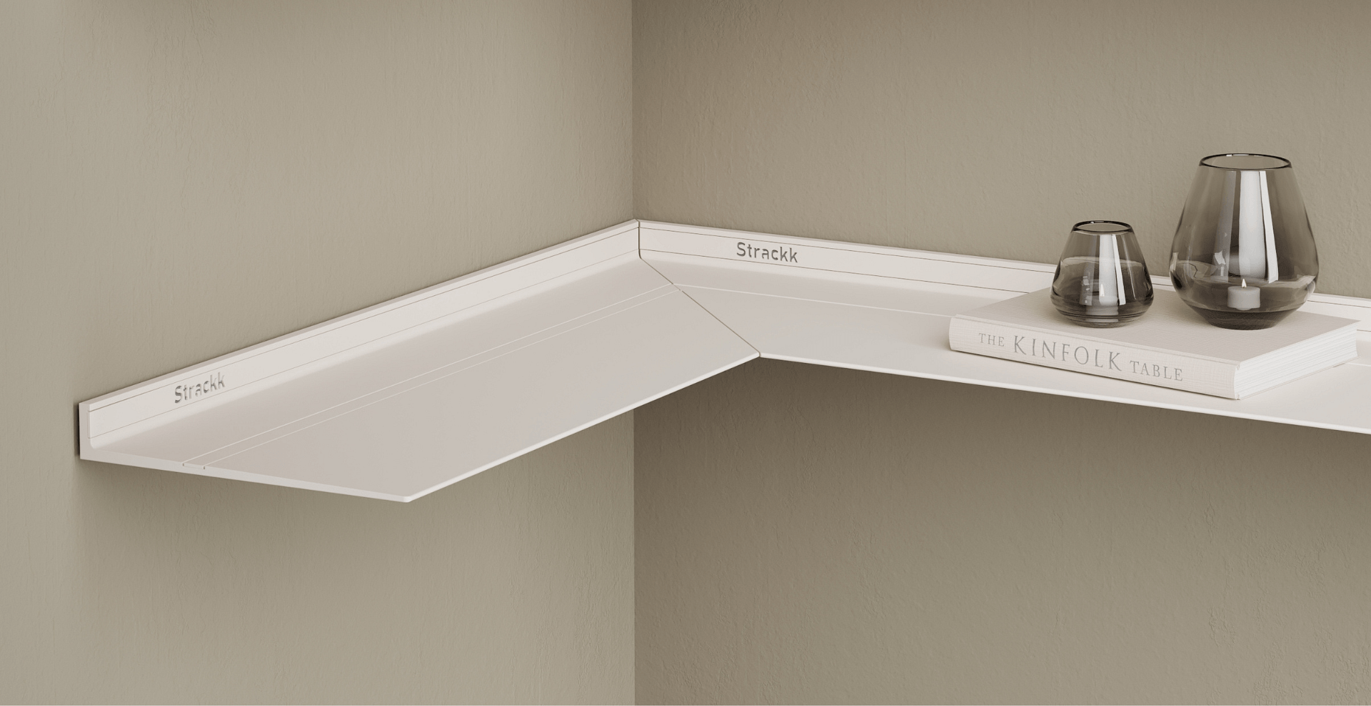 De Strackk hoekplanken Aluminium zijn niet alleen esthetisch, maar ook ontworpen om uw ruimte maximaal te benutten. Met ons unieke verstek zaagdesign kunt u elke binnenhoek van uw keuken, woonkamer of kantoor transformeren in een functioneel en stijlvol display.