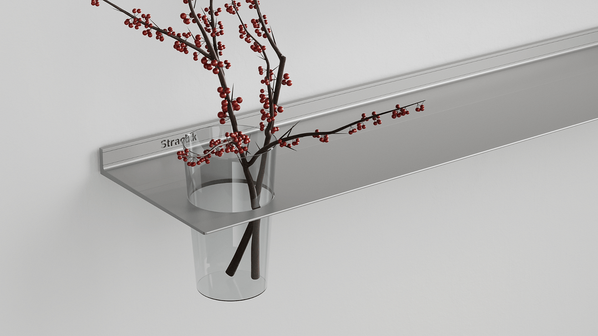 U maakt uw zwevende wandplank nog functioneler met onze speciaal voor Strackk ontworpen accessoires, zoals boekensteunen, haken en cabinets. Plaatst u een van de twee meegeleverde metalen strips in de richel dan wordt uw plank magnetisch. De magnetische accessoires zoals de haken kunt u onder de plank klikken ter hoogte van de richel met strip.