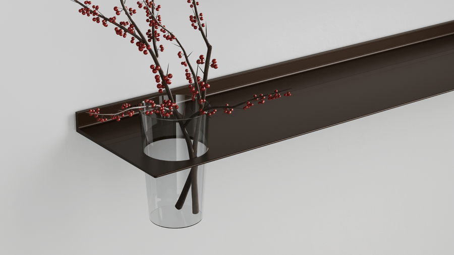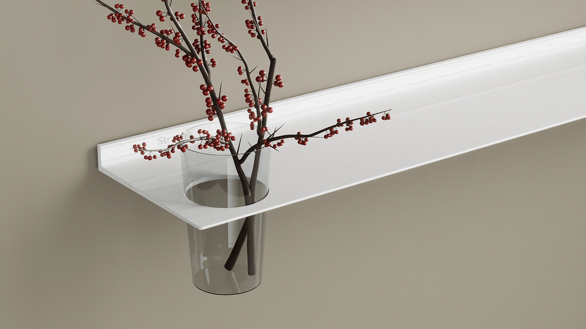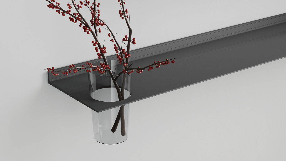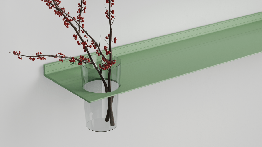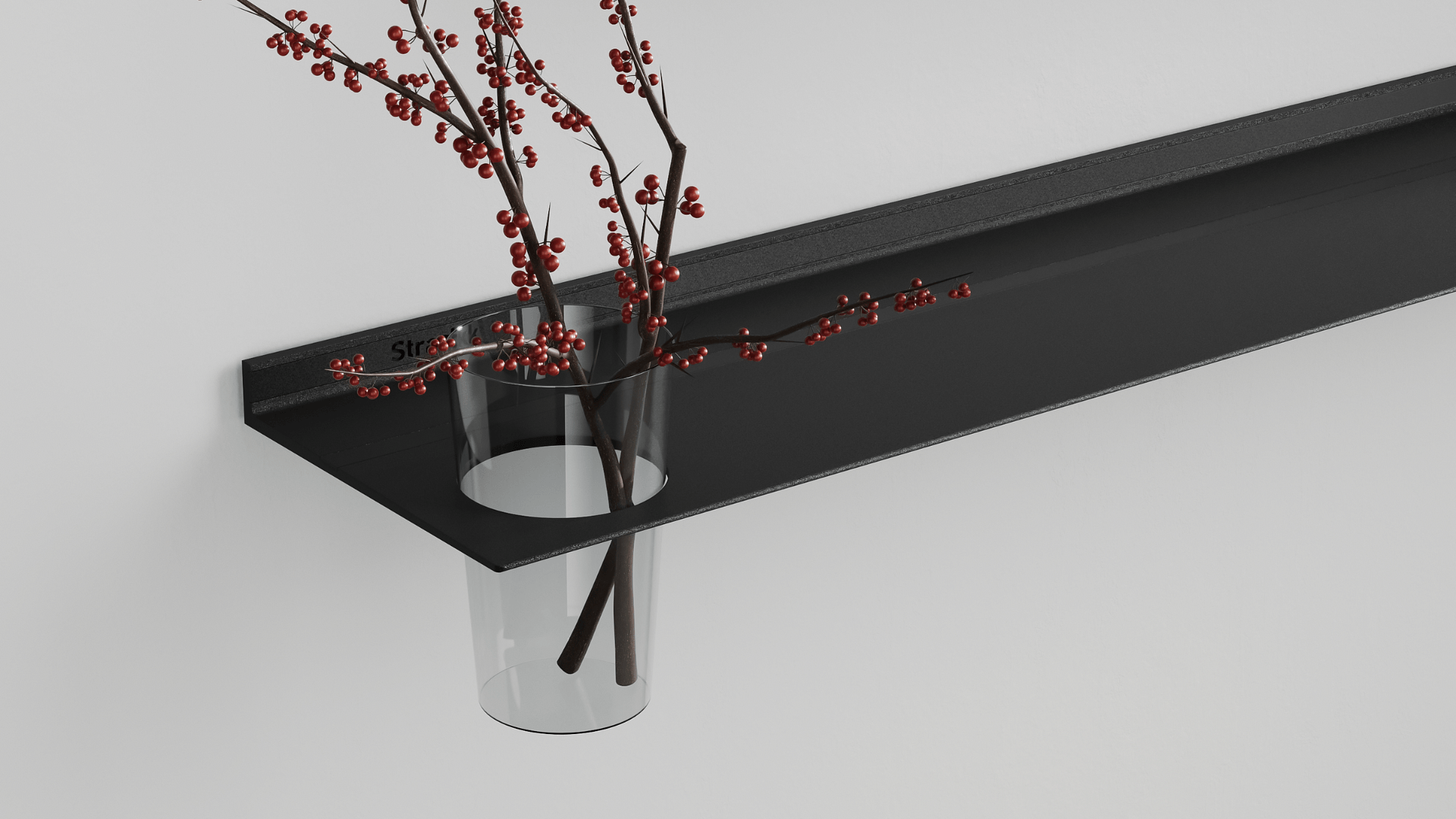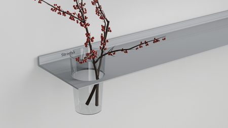 De zwevende plank is gemaakt uit één stuk gerecycled metaal zodat de plank oersterk is en eeuwig meegaat. U kunt uw zwaarste spullen op de plank presenteren daar deze een gewicht tot wel 250 kilogram per meter kan dragen.