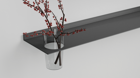 De wandplank voor een vaas Wit is zeer decoratief in uw keuken of woonkamer. Het is een zwevende plank met een ronde 12,5cm uitsparing. Een glazen conische vaas is bij de prijs inbegrepen. De geleverde vaas kan afwijken van de foto's. Tijdens het bestelproces kunt u aangeven of u de ronde uitsparing links of rechts in uw plank wenst.