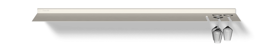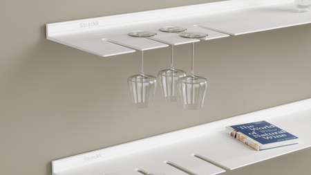 De wandplank met wijnglazenrek Wit is ideaal voor in de keuken of woonkamer. Zo heeft u uw wijnglazen altijd bij de hand. Tijdens het bestelproces kiest u zelf het aantal sleuven en of u deze links of rechts wenst. In 1 sleuf passen tenminste 2 grote rode wijnglazen. Het aantal sleuven heeft geen invloed op de prijs. De zwevende plank is gemaakt uit één stuk gerecycled metaal zodat de plank oersterk is en eeuwig meegaat. Plaatst gerust al uw zware kookboeken op de plank want deze kan een gewicht tot wel 250 kilogram per meter dragen.