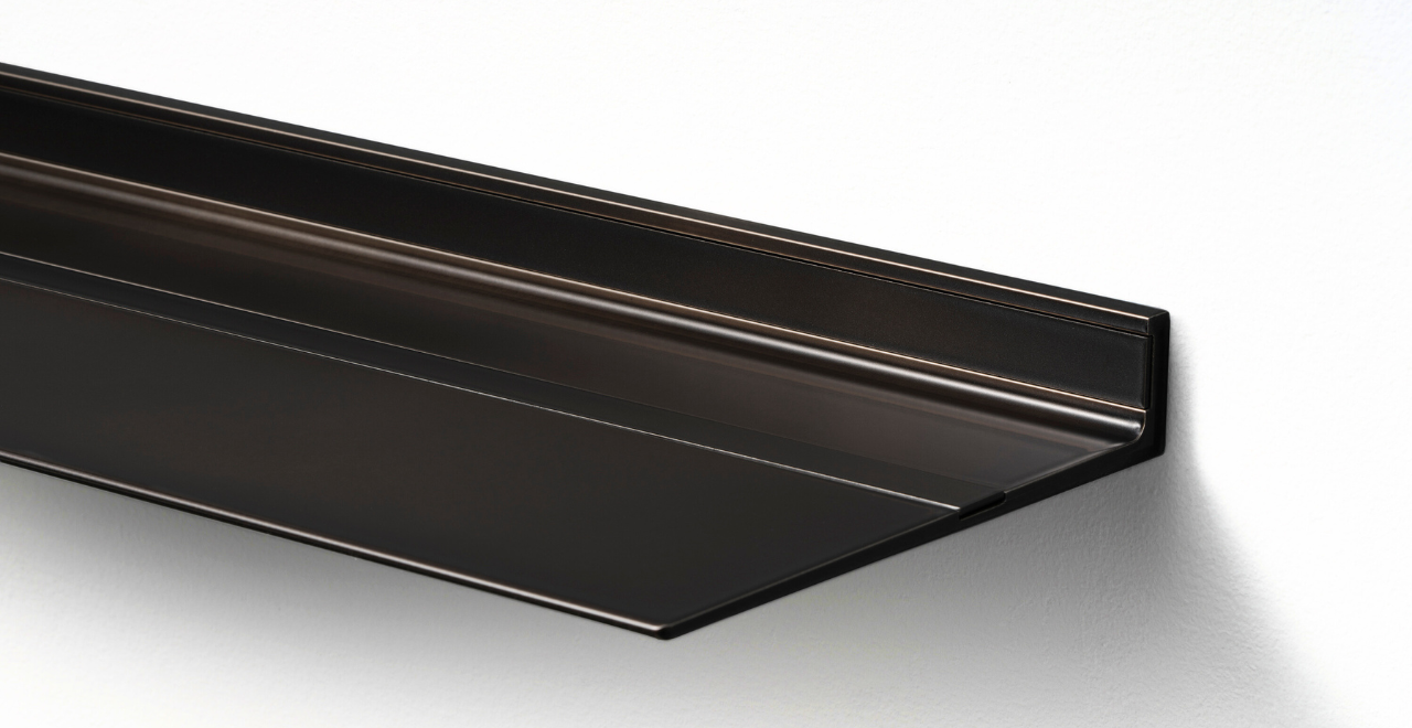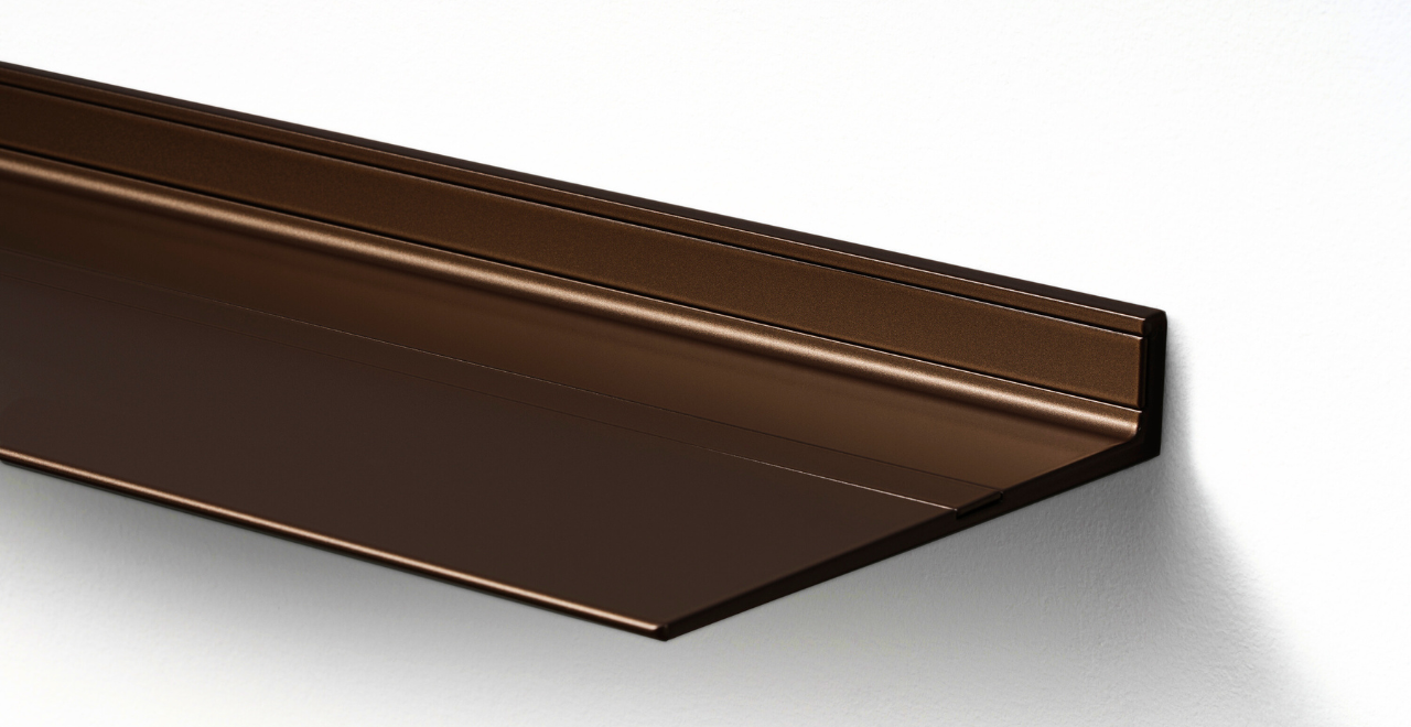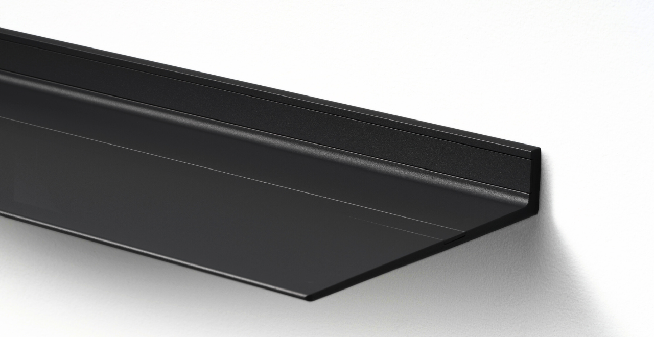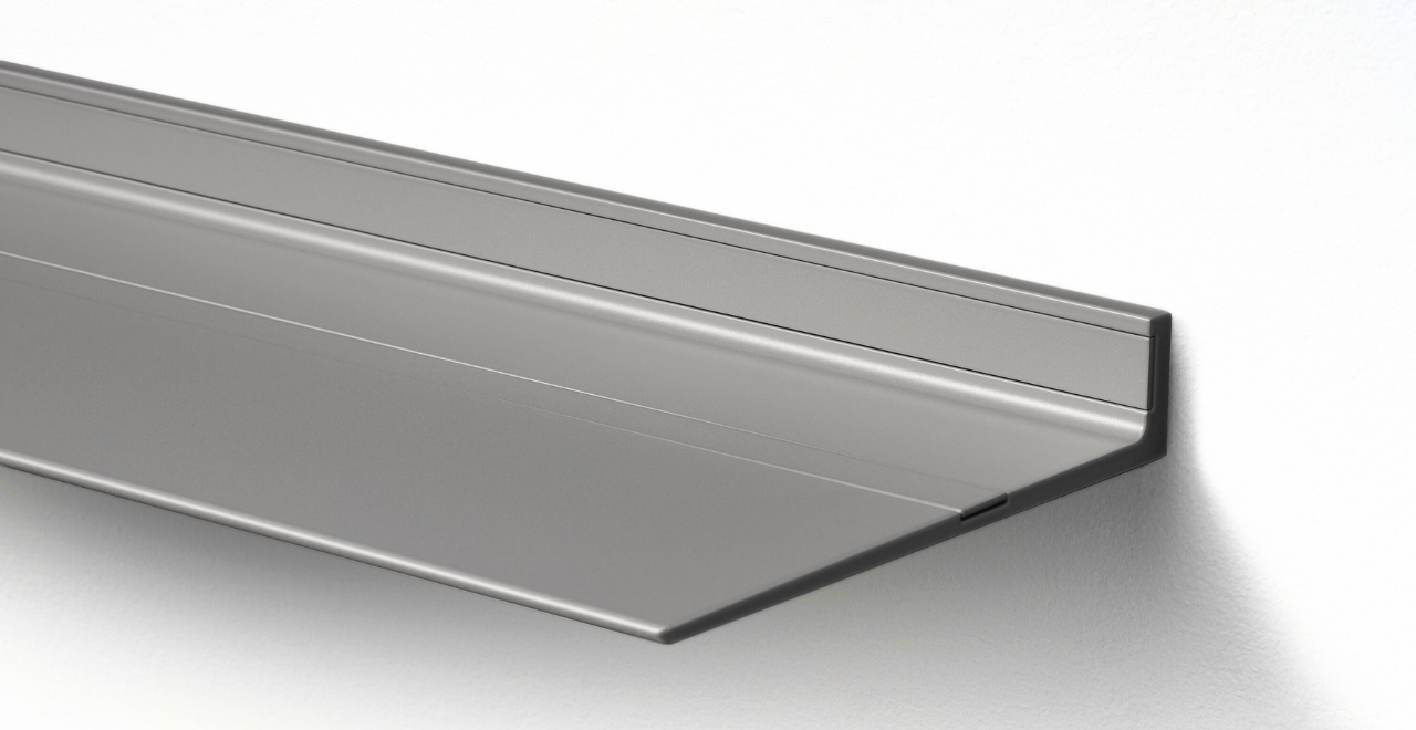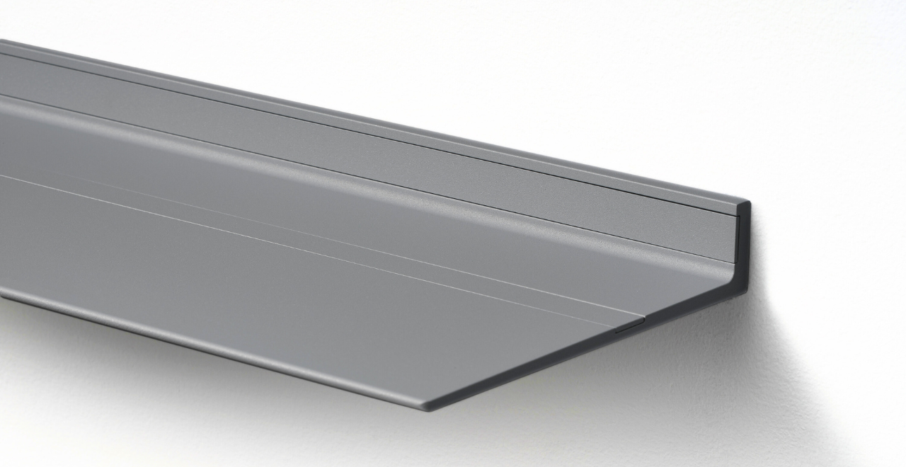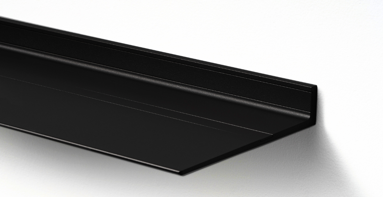 De zwevende wandplanken van Strackk zijn verkrijgbaar in Wit of elke andere kleur uit de 127 kleuren met afwerking in mat fijn structuur of zijdeglans. De plank zweeft aan de muur door het onzichtbare ophangsysteem met tegelijk een ongeëvenaard draagvermogen tot wel 250 kg/m. Gemaakt van oersterk gerecycled aluminium dat generaties lang mee gaat.